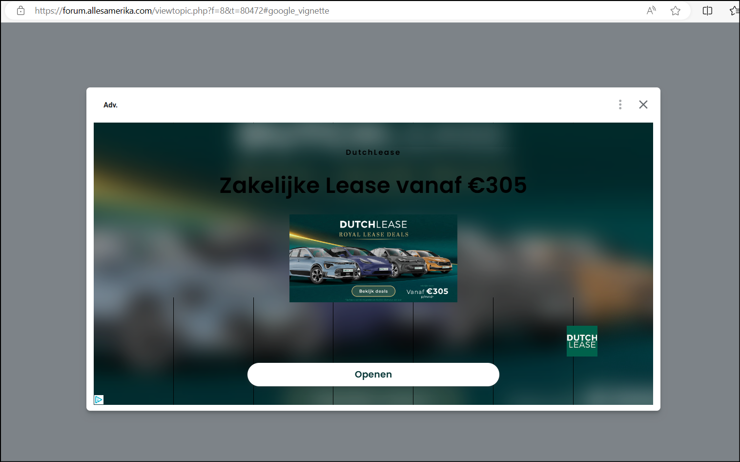 Ja die beeldvullende reclame heb ik ook, sinds de site weer in de lucht is. Heel irritant. Daarnaast ook nog al die andere reclamebalken. Niets aan te doen, want de webmaster van dit forum geeft niet thuis. Ik denk dat allesamerika.com en het bijbehorende forum een aflopende zaak is.