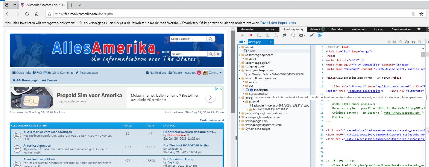 Ik zie dat de tool van alles doet als je een pagina laadt en er verschillende foutmeldingen naar voren komen. Weet echter niet hoe ik die moet zien. Het forum werkt maar enkel pagina's met een soortgelijke link als eerder genoemd willen niet laden.