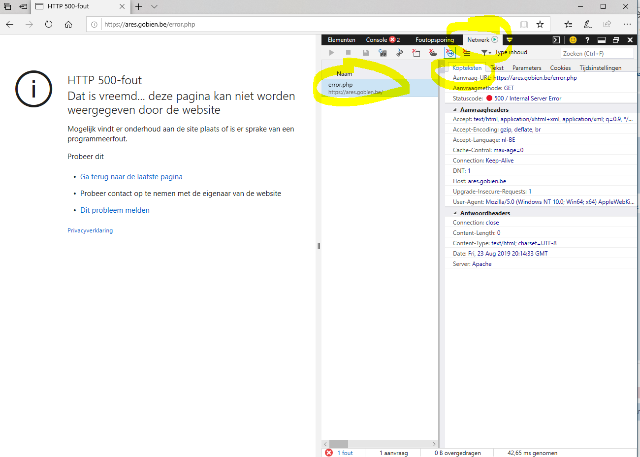 Ik heb enkel een screenshot nodig tijdens de fout. Van een pagina die goed laad niet.
