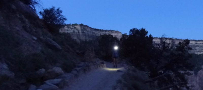 Naar beneden lopen is helemaal niet zwaar. De trail loopt heerlijk en als je vroeg genoeg weg gaat dan heb je een fantastische zonsopgang bij Ooh-aah point. Wij hebben de 4am hikers bus genomen vanuit GCV (we zaten in de Bright Angel lodge) en waren om 4.30 on-trail.