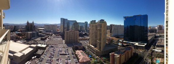 Update: ik heb nog even een foto gemaakt van het uitzicht naar The Strip vanaf de 29 verdieping, kun je zelf bepalen of het meerprijs waard is.