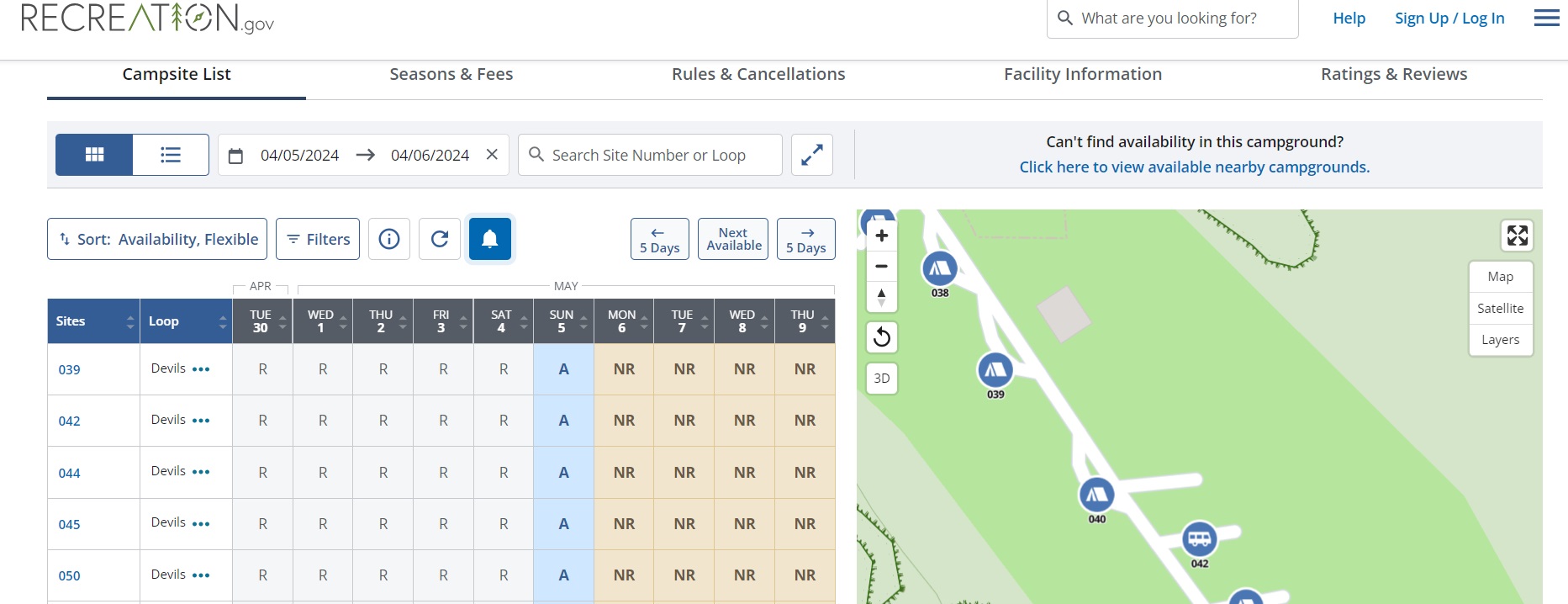 Op mn laptop recreation.gov geopend. Zie plaatje