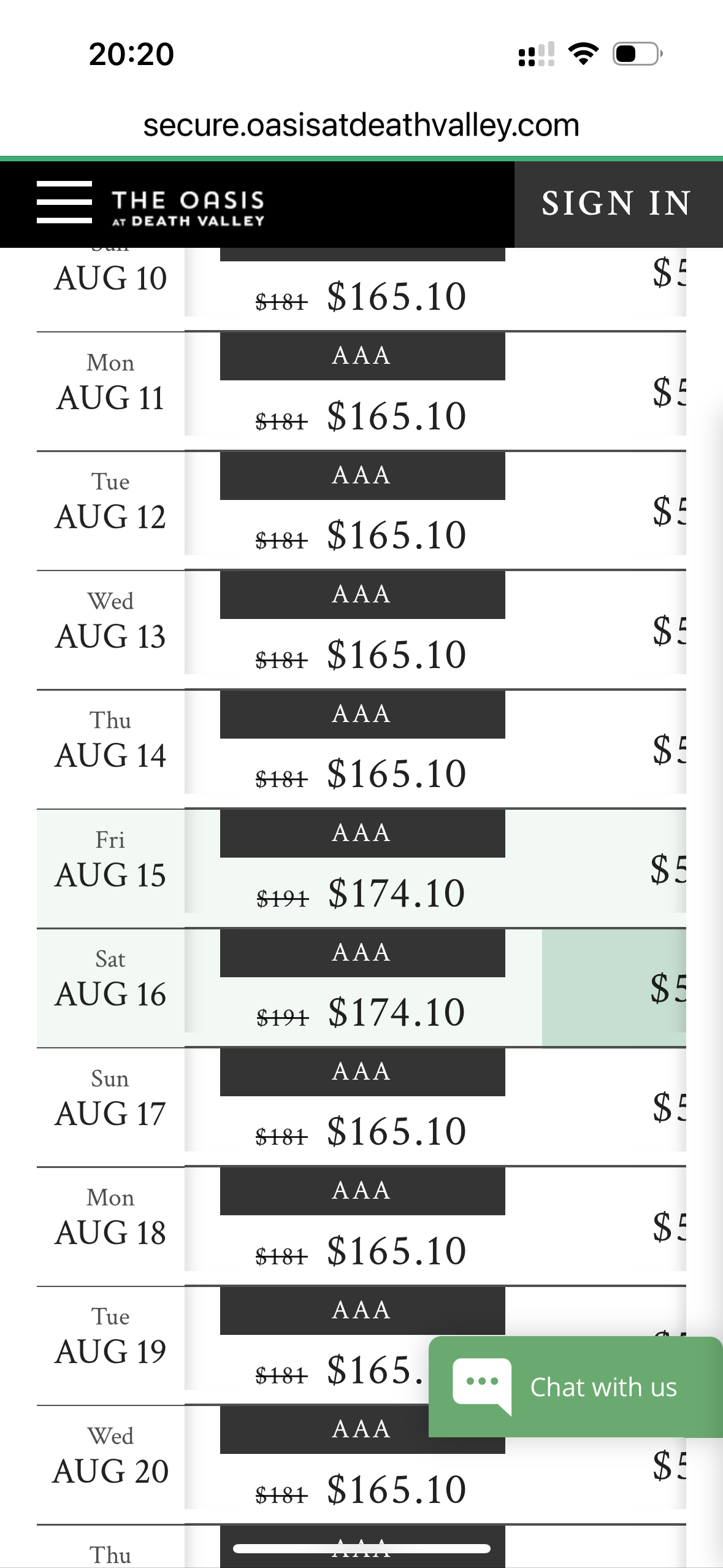 Net even gecheckt of ze mijn cc niet dubbel hebben belast (is niet zo) en keek nogmaals op de site en als je nu (enkele uren later) boekt voor volgend jaar augustus is het bedrag alweer opgelopen naar $200,-.