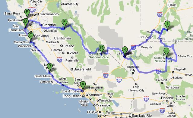 Wij zijn bezig om een reis te plannen in zuid west amerika. We willen veel en gooien de planning nog regelmatig om. We komen aan in LLA en willen vrij snel in een zeer relaxed tempo via de kust naar San francisco. Vanuit daar via de wine counties naar yosemite en dan door naar death valley. Vanuit death valley een avondje vegas en door naar bryse. Dan naar de grand canyon en weer terug naar vegas. Dan vliegen we naar miami om bij vrienden een paar dagen op het strand te liggen. Wat vinden jullie ervan?