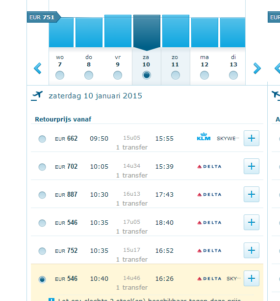 Ja dat valt nog wel mee. Terugvlucht was wel in de ochtend en ik wil graag eind van de middag in vegas aankomen. Als het bij KLM weer 599 euro kies ik daarvoor.