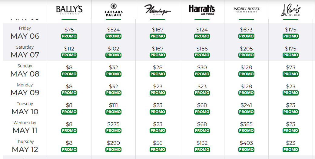 @asv60 Ik weet niet of je status hebt bij Caesars, maar daar zie ik voor die woensdag/donderdag mooie prijzen voor Paris..$23 p/n zonder resort fee dus als je status hebt. Rio en Ballys zelfs voor maar $8 p/nacht.