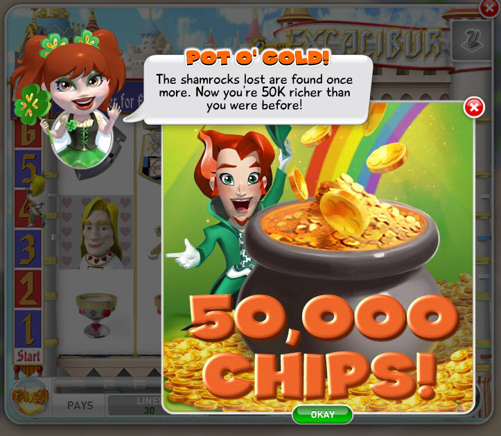 Vind je 3 shamrocks dan krijg je 1.000 chips, bij 7 ontvang je 5.000 chips, etc.
