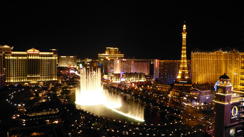 Nu nog een laatste avond genieten van het onwaarschijnlijke uitzicht (Bellagio-fonteinen inmiddels weer aan het spuiten) en regelmatig eens de oogjes opendoen om naar buiten te kijken...