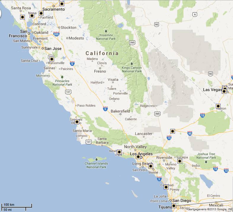 Las-Vegas - San Diego- Los Angeles- Las Vegas. Dat is globaal de route.