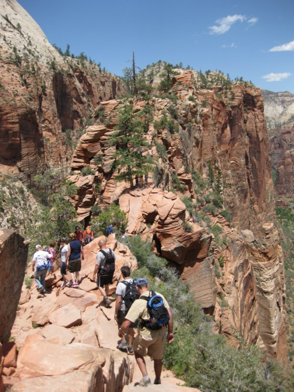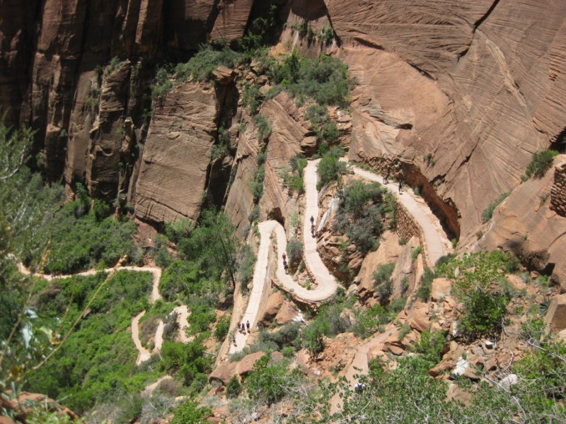 Wij hebben vorig jaar zomer ook Angel's landing met onze dochters (13 en 15) gedaan. In een woord geweldig. Geweldig zwaar (zie de stijle slalombochten hierboven) en geweldig mooi om te doen.