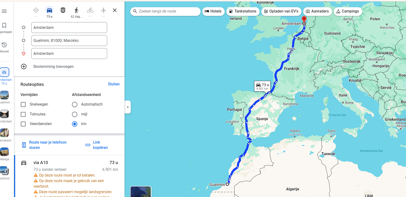 @Lilo: onze zoon is al 25 jaar dus dat zit wel goed 😊 ik zelf heb al 25 jaar mijn rijbewijs, maar na het halen nooit meer gereden. Ik ga dit jaar eigenlijk pas beginnen met rijden – maar het zal voornamelijk mijn vrouw zijn denk ik – zij houdt er gewoon veel van. Langste wat we tot nu toe hebben gedaan is naar het zwarte woud gereden. En in dit najaar gaan we een grote test doen: dan rijden we naar Barcelona, bezoeken we (noorden van Spanje) een paar steden en gaan we weer terug: totaal 4000 km in 3 weken (tegenover dit reisschema van 7500 km in 4 weken).