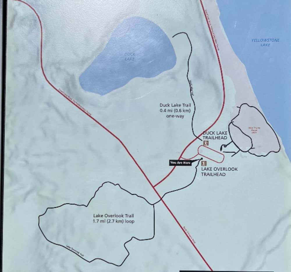 Vanuit daar de West thumb/Central Basin, Duck Lake- en Lake Overlook Trail en eventueel nog door naar Shoshone Lake overlook.