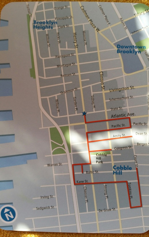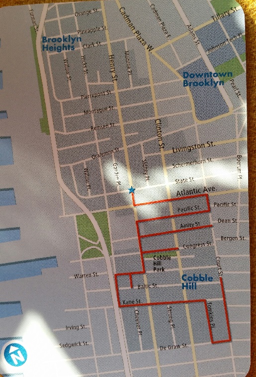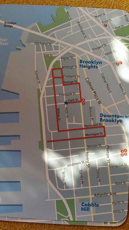 Verder is een wandeling langs Flatbush ("vlakke bos", niks met een struik te maken) Avenue richting Brooklyn Bridge typisch Brooklyn, erg gemend en druk. Je komt dan ook langs bij het Barclay Center (Brooklyn Nets basketbal centrum, met een winkeltje en daar tegenover ook een sportzaak) en bij de BAM (theatercentrum onder de toren van de bank daar). Verder een Junior's restaurant (het echte, oorspronkelijke restaurant). Aan het einde links aanhouden en dan ben je zo in Brooklyn Heights. En de toegang voor de BB.