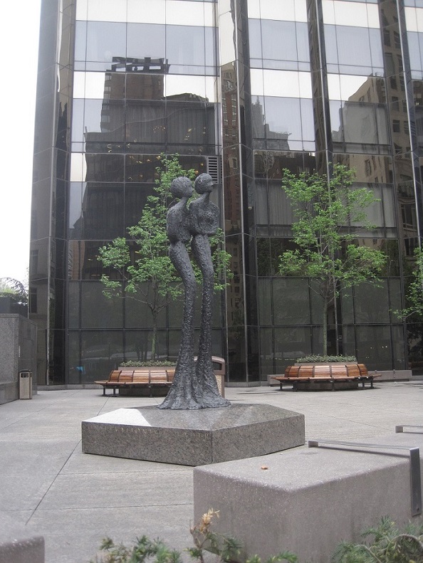 Hint: om de hoek staat een kunstwerk waar bijna iedereen die in New York is geweest een foto van zal hebben ...