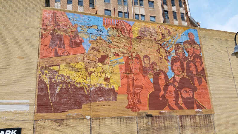 Deze mural, die binnenkort gaat verdwijnen, is een hommage aan (ook vrouwelijke) arbeiders wier werkomstandigheden zeer moeilijk waren ....