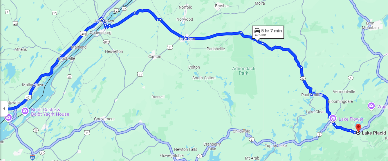 Ik ga vrijdag tot maandag naar Lake Placid en verblijf in Crown Plaza Hotel.
