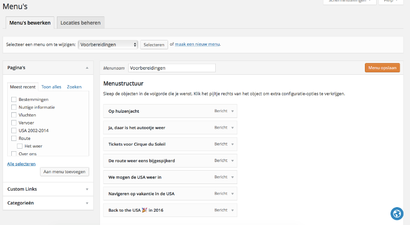 Daarnaast, internet en YouTube staat vol met tips en handige uitleg over Wordpress. Ik ben ook ooit begonnen om van elke dag een aparte pagina te maken, heb ik naderhand veranderd. Nu staat een hele reis op één pagina welke onder het hoofdmenu hangt. Werkt best prettig, dan kan je in één keer doorwerken cq lezen.