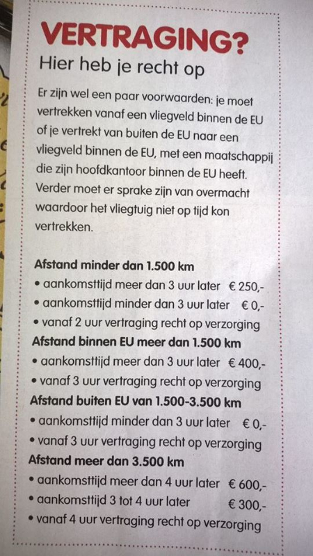 Twee jaar geleden vlogen wij met Air Berlin naar Seattle. Bij vertrek hadden we drie uur vertraging waardoor we onze aansluiting in NY naar Seattle misten, die vlucht konden we pas de volgende dag nemen. Heel veel vertraging dus. Hotel en maaltijden werden wel keurig betaald en we kregen een kaartje met gegevens van de site waarop we om compensatie konden vragen bij Air Berlin.