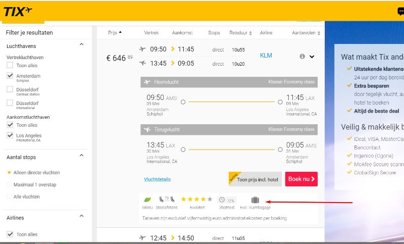 Dit is dus zonder bagage. Op tix.be staat bij bijzondere informatie dat 1 koffer is inbegrepen maar dat is dus ook niet zo. Maar dat staat er niet. Ik heb via FB contact gezocht met tix en een screenshotje meegestuurd. Nu hebben ze toegezegd dat de bagage voor 1 persoon gratis is. Dat scheelt weer.