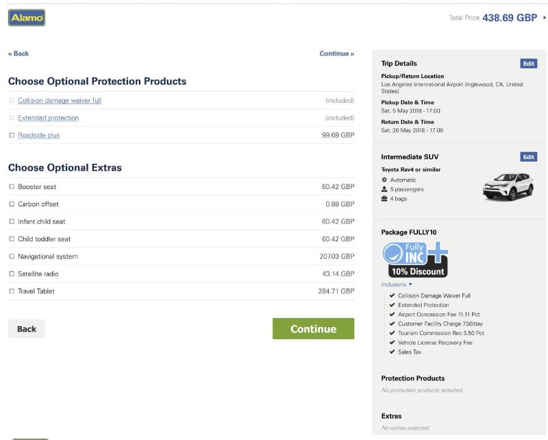 Misschien dat Alamo UK (en dat is dus niet Alamo de autoverhuurder) nu de upsell probeert te doen. Normaliter doet de verhuurder dat, bijvoorbeeld bij de balie.