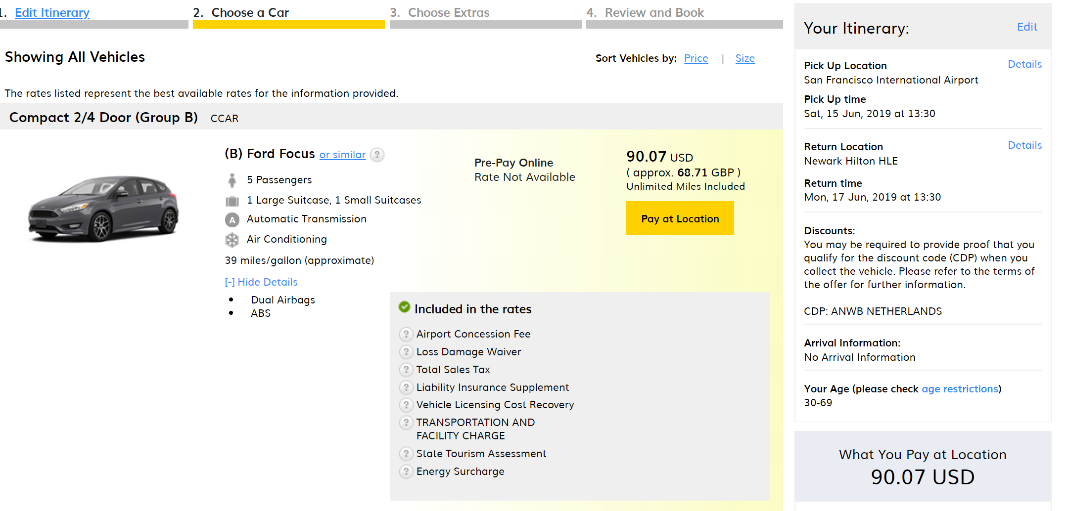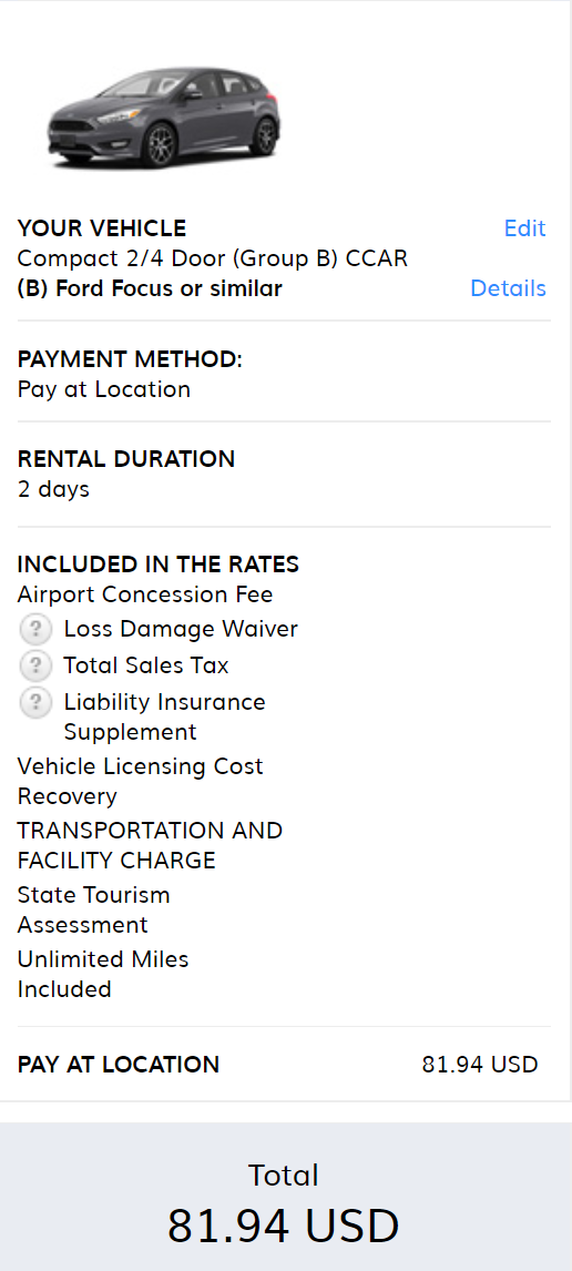 Al die tariefcodes en de voorwaarden waar jij het over hebt gaan alleen maar over het huren/meekrijgen van de auto op zich.