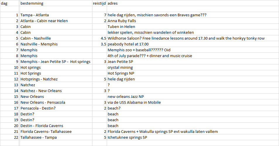 1 za 27-06 Tampa - Atlanta 7 hele dag rijden, mischien savonds een Braves game???
