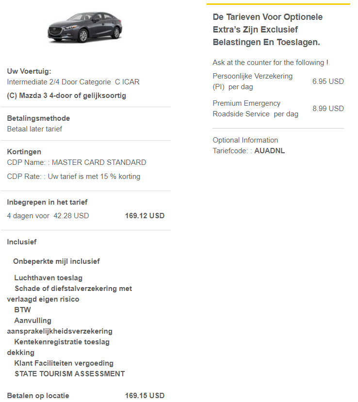 Ik heb op het laatste moment toch nog besloten om een extra boeking te doen via hertz erbij, Mocht er niks bijzonders bij Nationals staan.
