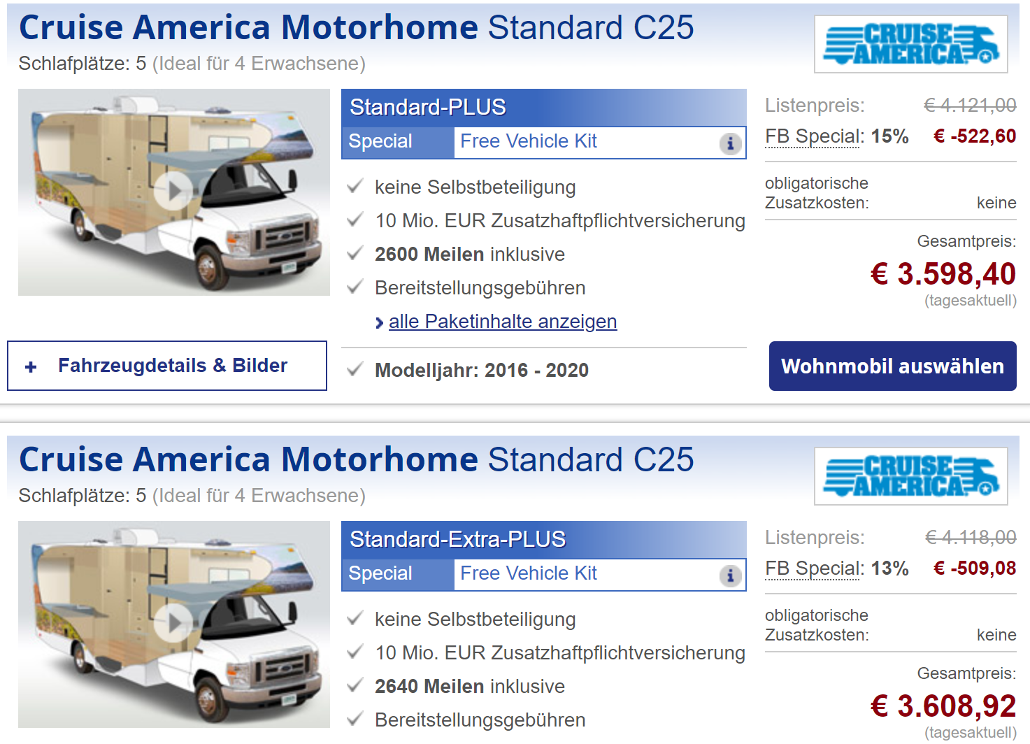 Geen specifieke eisen. De prijs van de c25 van cruise america (in usa ook ca geboekt vorige jaren) werd zo hoog nadat tax en personal kit en kitchen supplies etc erbij kwamen. Er waren wel geen vroegboekdeals zoals bij deze dus ik ga onmiddellijk kijken. Bedankt!!