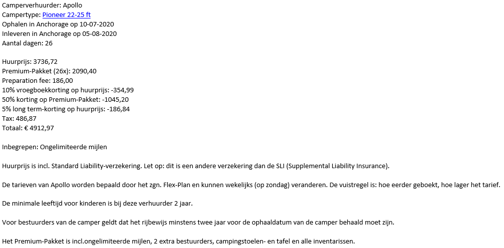 Aangezien wij ook in 2020 naar Alaska gaan (zie eigen post) heb ik al prijzen van campers opgevraagd bij TiogaTours.