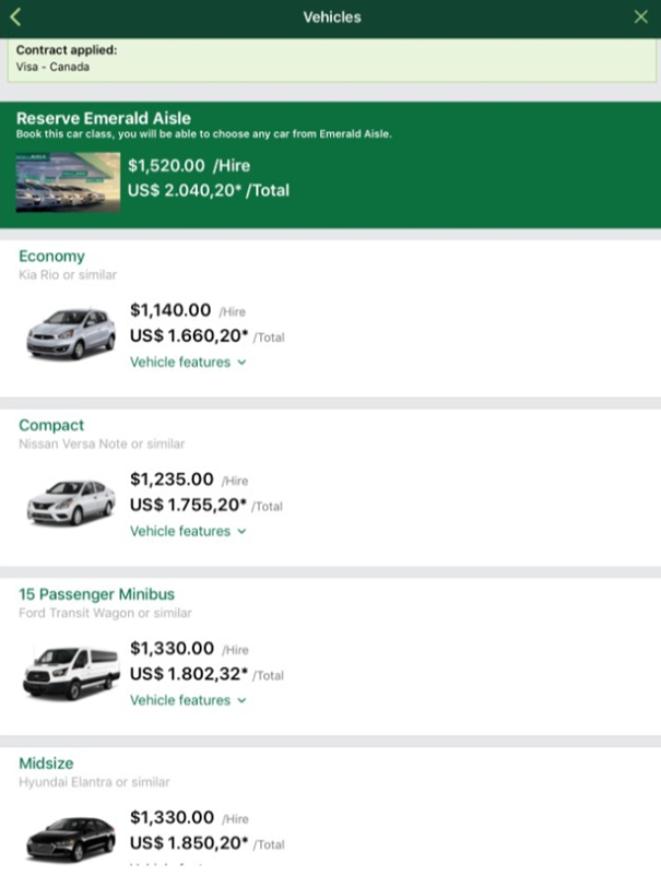 Ik heb nu even gekozen voor de midsize sedan, maar volgens mij moet ik diegene kiezen die in het groen aangeeft dat ik uit de emerald aisle kan kiezen? Maar die prijs is nog hoger. daar staat dan wel bij ik dat uit de emerald aisle mag kiezen, maar ik ben executive member, volgt het later nog dat ik ook uit de executive aisle kan kiezen?