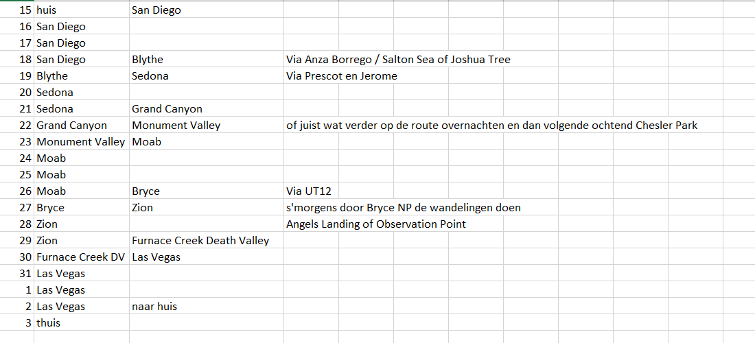 Waarbij San Diego t/m Sedona voor onze dochter nieuw is (route 66 heeft ze al ooit mee gedaan in 2014, maar toen heeft ze heel dat stuk geslapen
