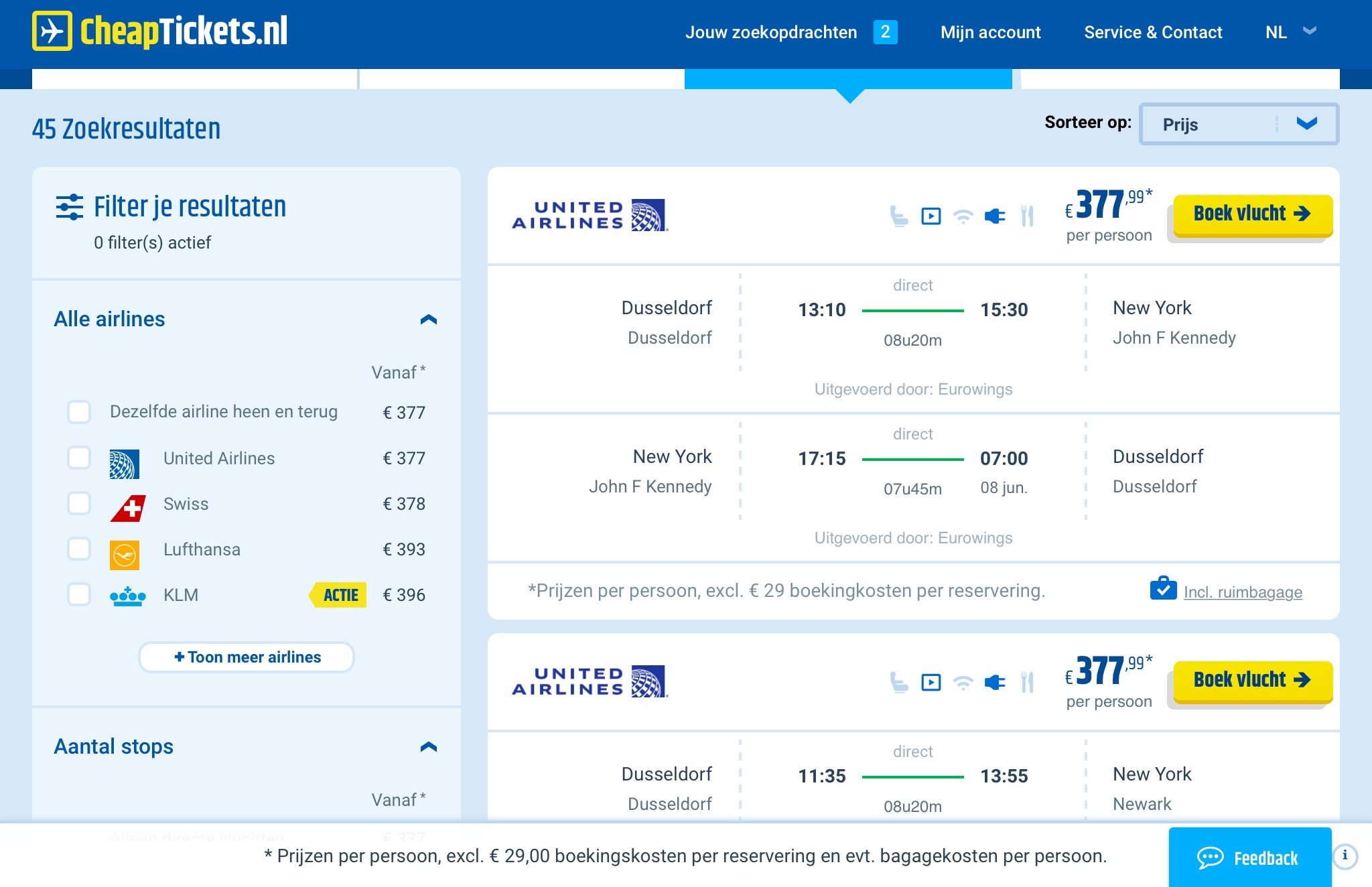 Als er iemand naar New York wil in de maand Juni. Heen op 01 juni en terug op 08 juni. Rechtstreekse vlucht voor €377,99( excl. boekingskosten) incl ruimbagage.