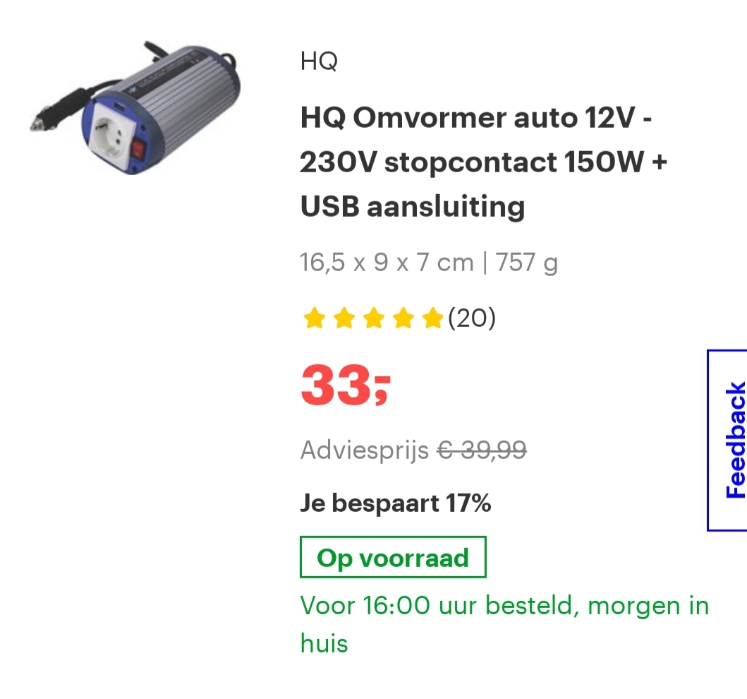 maarNogmaals: ik begrijp dat het handig is wanneer je geen usb-aansluiting hebt aan je apparaat maar alleen een stekker (zoals Michelly zei) of als je een laptop moet opladen maar ik zie het nut niet om eerst op te schakelen van 12 volt naar 230 volt (kost veel tijd/ energie) en dan weer te moeten terugschakelen naar 4 of 5 volt om je camera of mobiel op te laden (want dat doen de standaard transformatoren die tussen stekker en camera/ telefoon zitten). Dan heb je toch een onnodige handeling (van 12 volt naar 230 volt).