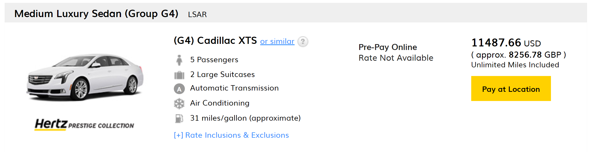 Andere wagens bij Hertz zijn nog steeds de ridicule 3000+ USD prijzen.