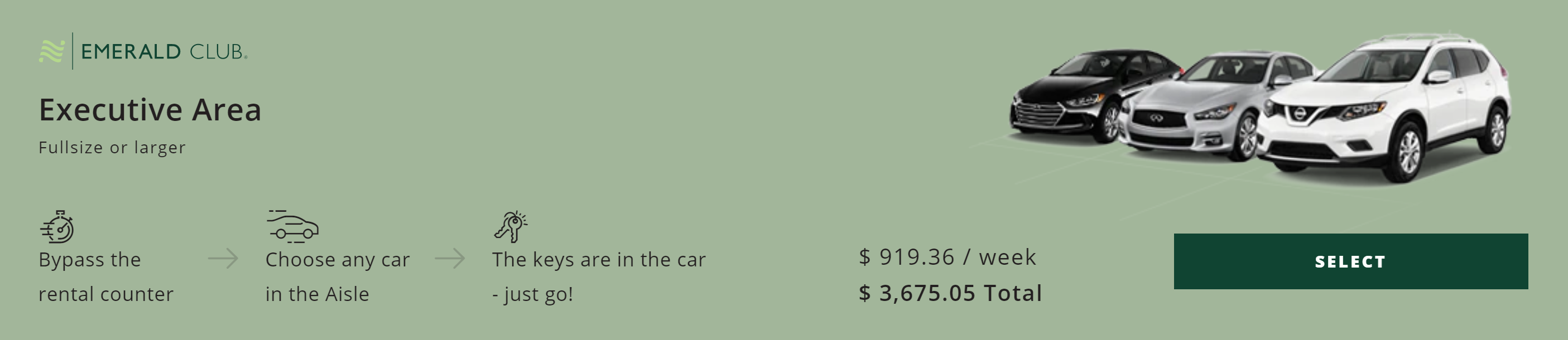 Dus maar het hele National aanmeld traject doorlopen en de status match naar Execitive elite gedaan en nu een auto uit de execitive ailse geboekt voor $ 506, dat vind ik wel een mooie prijs.