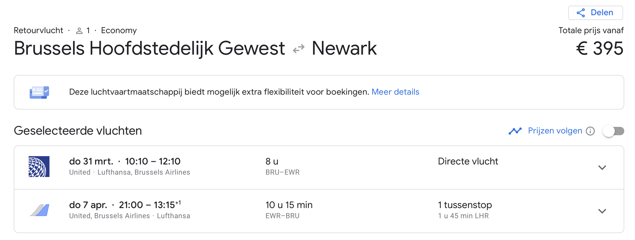 Maar dan nog vind ik de overstap op LHR die @Terpies als voorbeeld geeft niet ideaal. EWR - BRU moet makkelijk rechtstreeks kunnen. Weet niet wat het vliegschema (overstap ja/nee en vliegtijden) van @steven8600 is. Voor een goede vergelijking is het wel zo handig die er ook bij te vermelden.