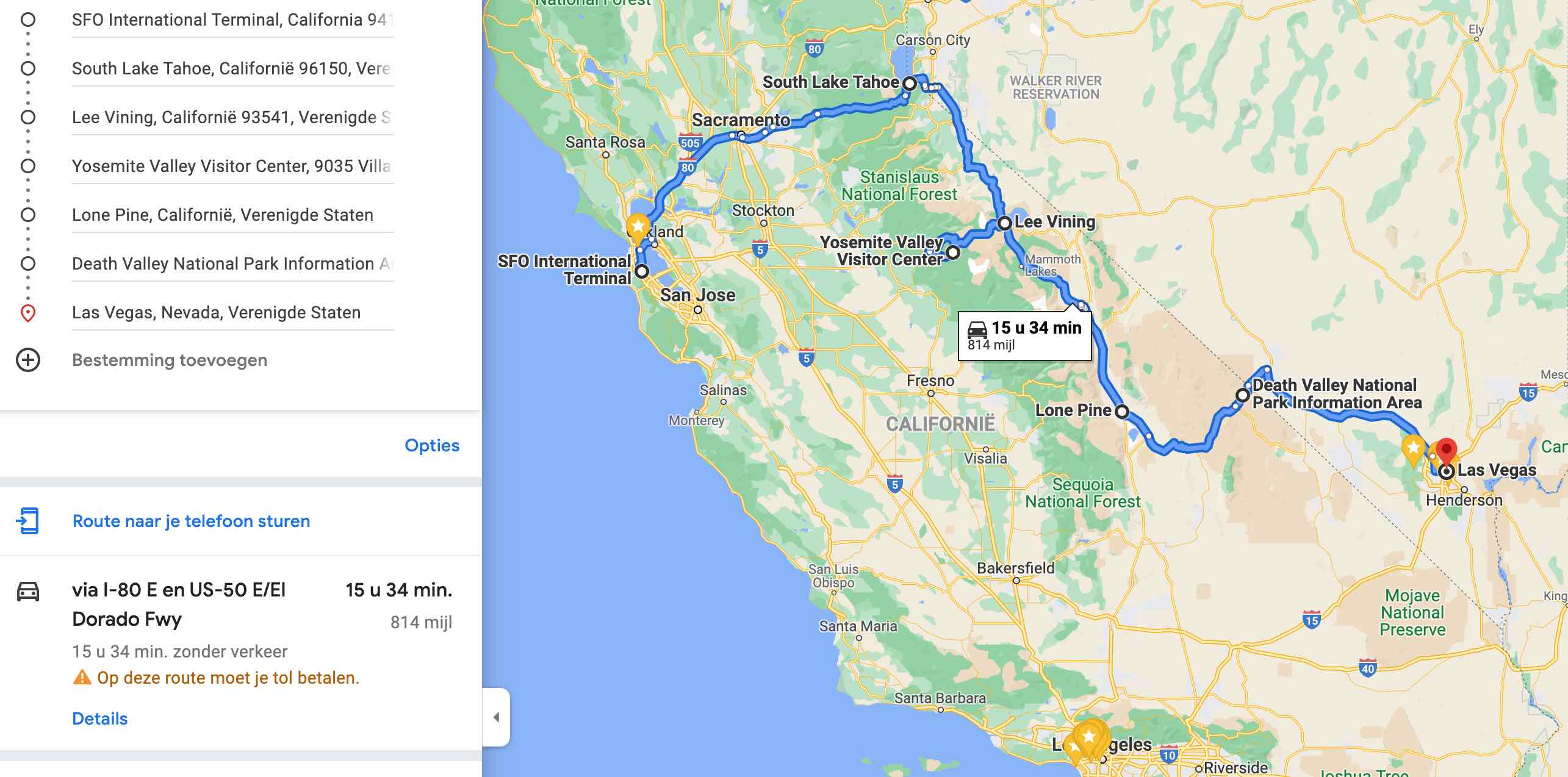 Ik zit eraan te denken om Lake Tahoe toe te voegen. Of eventueel in te ruilen voor Sequoia/Kings Canyon. Is dit dan een logische globale route?