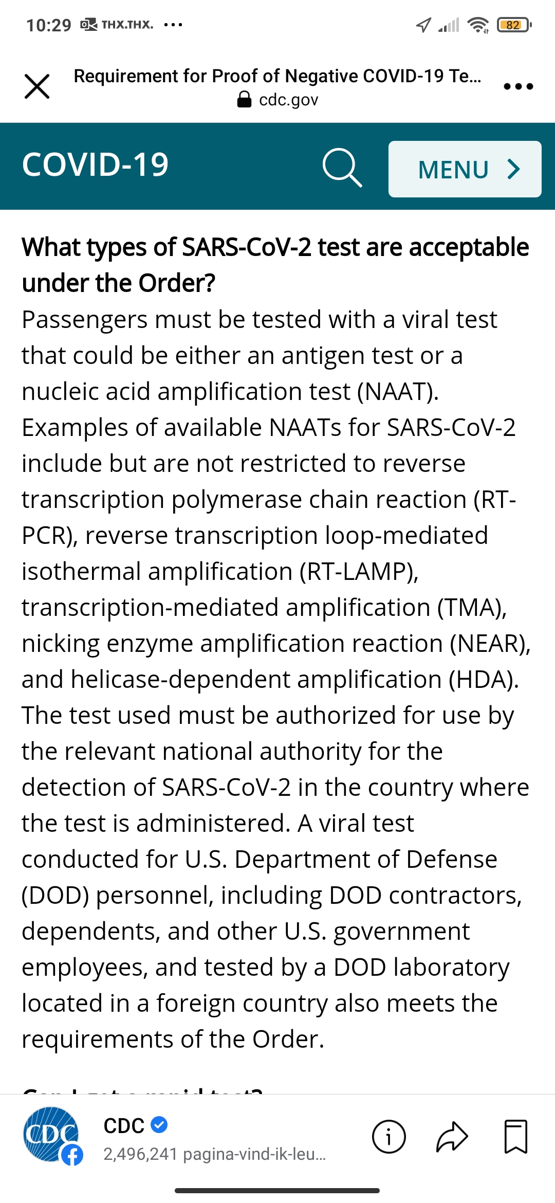 De antigeen test hoeft niets eens goedgekeurd zijn door de fda zolang de test maar goedgekeurd is door het land waar de test wordt afgenomen