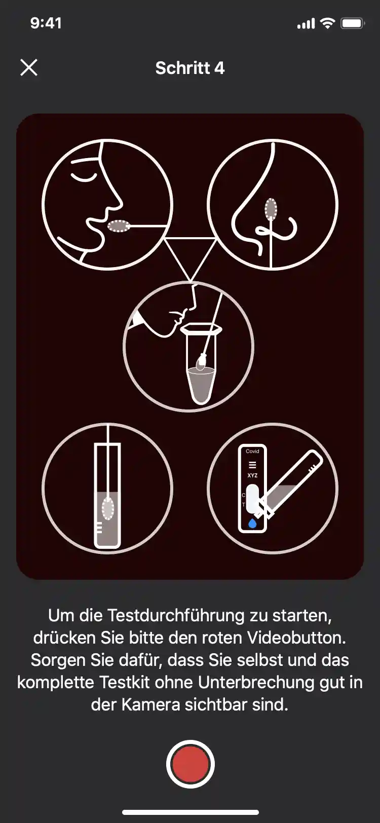 Dat kun je op de website terugvinden. Als ik goed lees moet je je tester zelf filmen en met een stift een code opzetten. Dan filmen hoe je staafje in je keel en neus doet. En tijdje later weer de uitslag filmen.