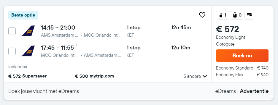 Ik zoek tickets naar Orlando 24 Okt-12 Nov. Bij KLM kom ik op ruim 1000 euro.