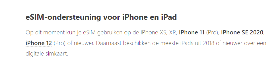 Ook het budget toestel de Iphone SE ondersteund overigens geen e-sim.