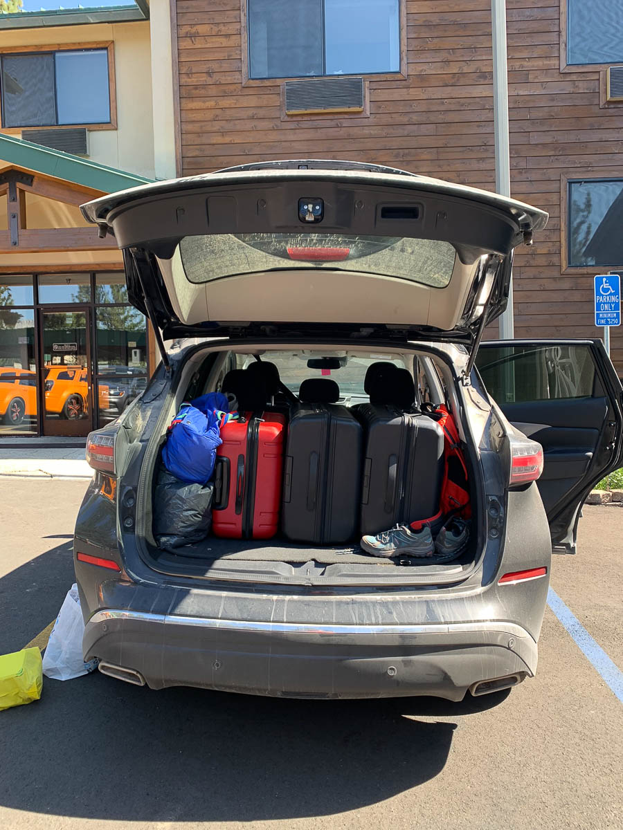 De Tahoe beviel niet. Inderdaad is de kofferbak significant kleiner en we moesten echt onhandig stapelen om alles erin te krijgen. Bovendien was hij zeker niet nieuw; er zaten scheuren in de bekleding en er stonden al veel mijlen op.