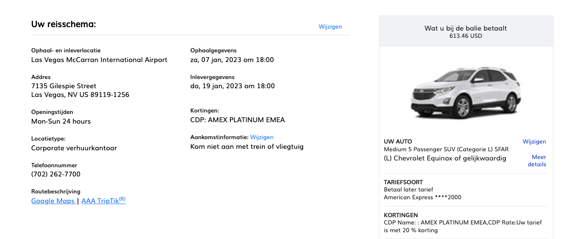 Heb nu wel een nette boeking bij Hertz, naast m'n Avis boeking van 3 tientjes goedkoper. In m'n account zie ik alleen staan: Service Type: Standard Counter. Moet ik daar nog achteraan mailen of iemand weet? Want ben wel Gold Plus Rewards President's Circle uiteraard Of heeft dat er niks mee te maken...