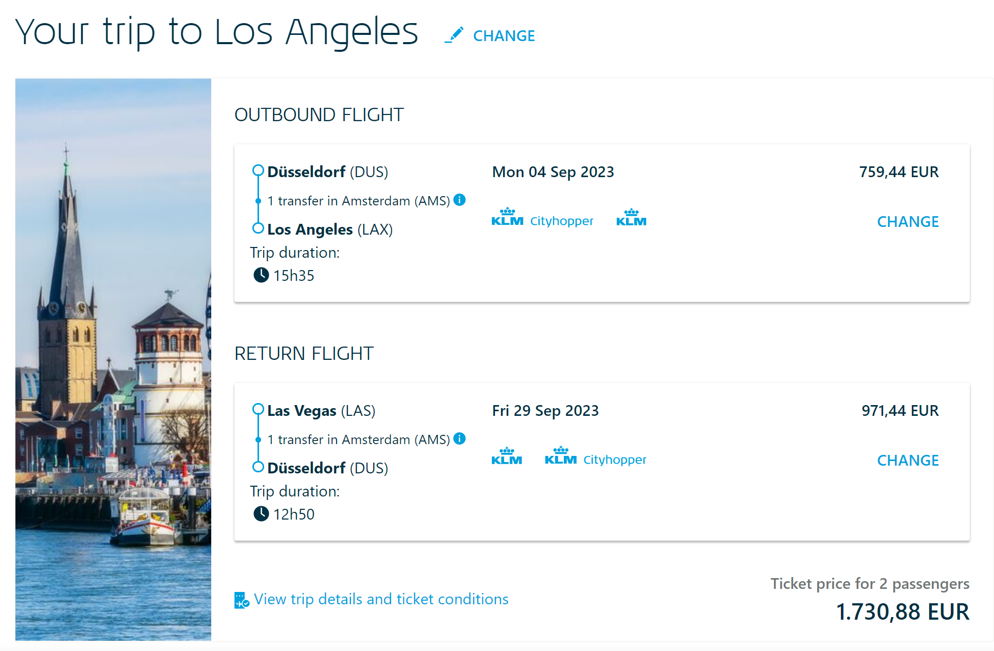 4 sept 2023 AMS (DUS zou ook kunnen) naar LAX liefst met aankomst voor 14.00 uur.