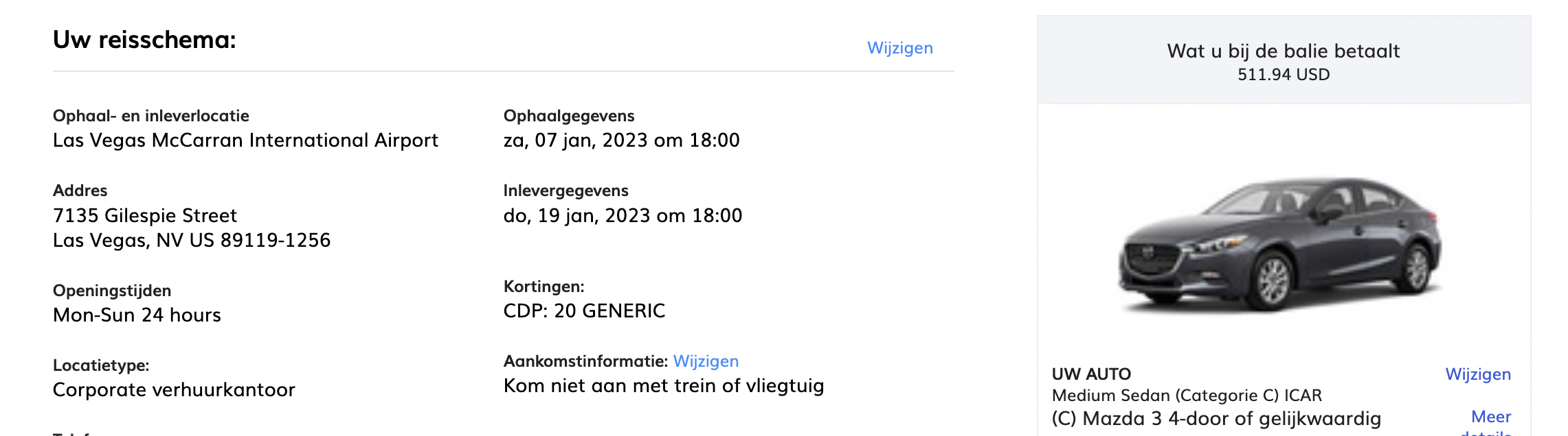 Inmiddels een auto geboekt met code 510000 via de “handleiding” waarbij ik via een ander scherm mijn president cirkel inlog gedaan heb. Het leek allemaal goed te gaan, alles 2x gecontroleerd. Maar nu de boeking binnen is lijkt het alsof hij niet via mijn status account gedaan is?