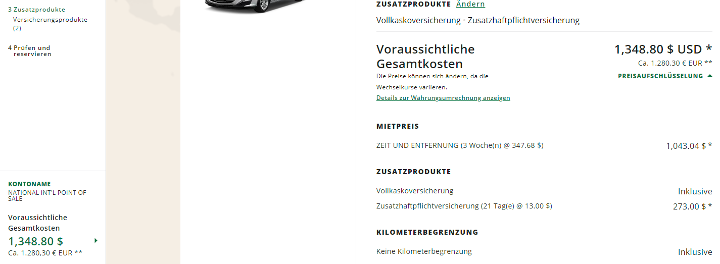 Ik ben nu nadat ik ingelogd ben, een proefboeking aan het maken op Nationalcar.de en hoop dat iemand met me mee wil kijken/denken.
