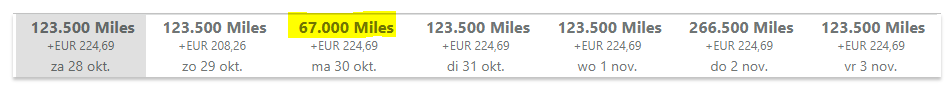 Fra-Mia in juli met 1 overstap voor 550 euro.