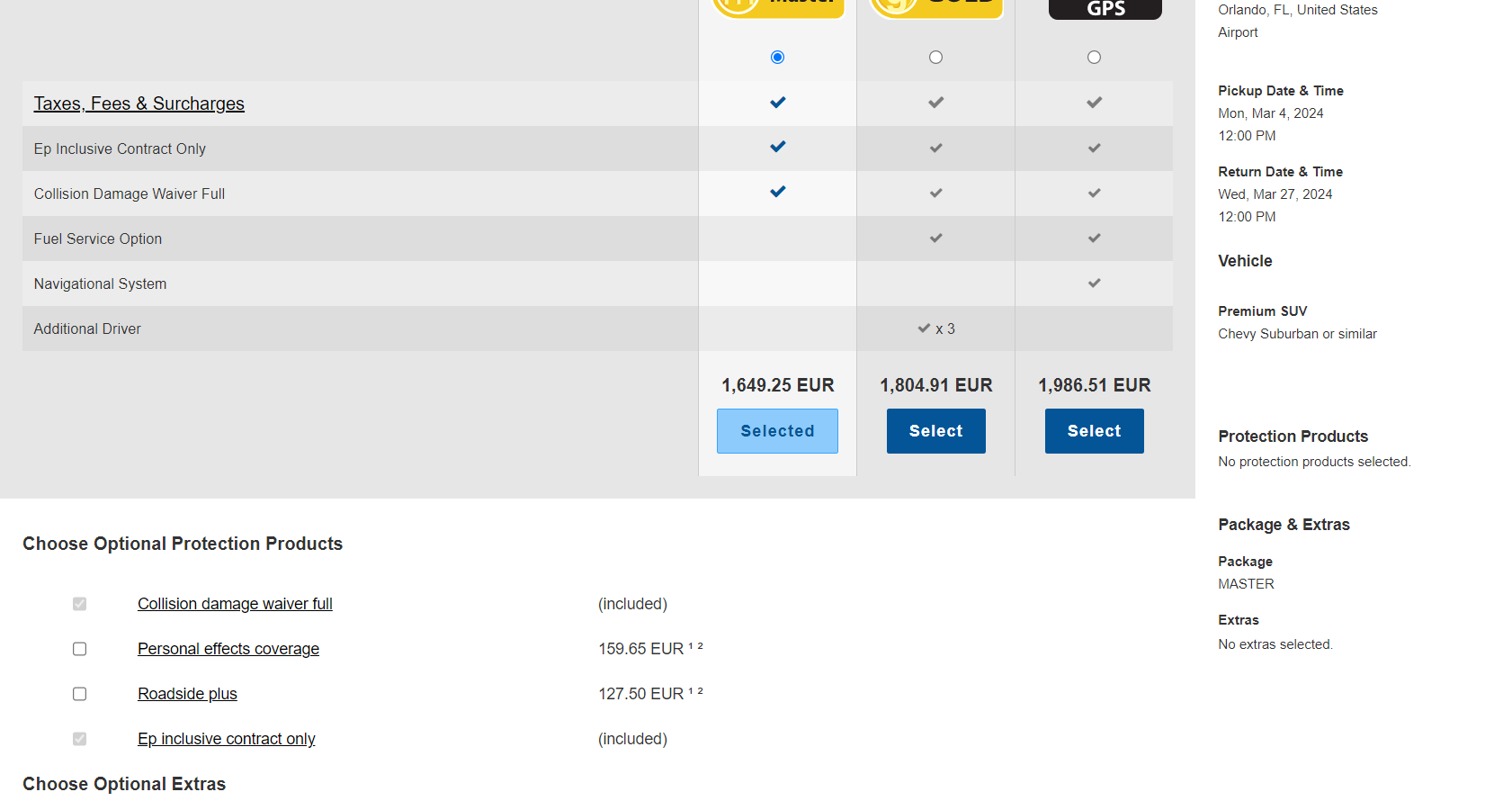 Kosten voor een midsize SUV met gratis extra bestuurder zijn dan 951 euro met deze voorwaarden: