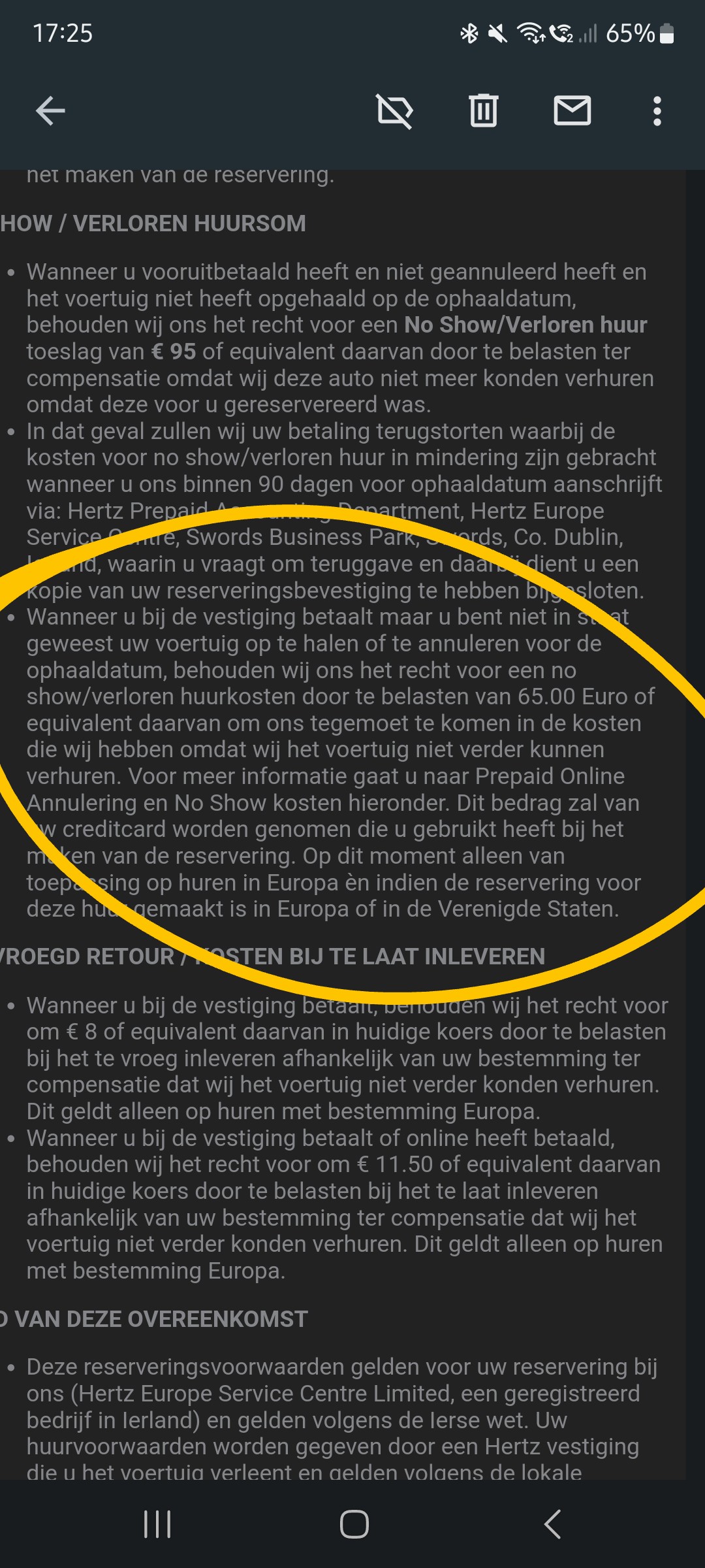 Maak mij gek. Er staat daar toch dat ze het recht hebben 65 euro in te houden?