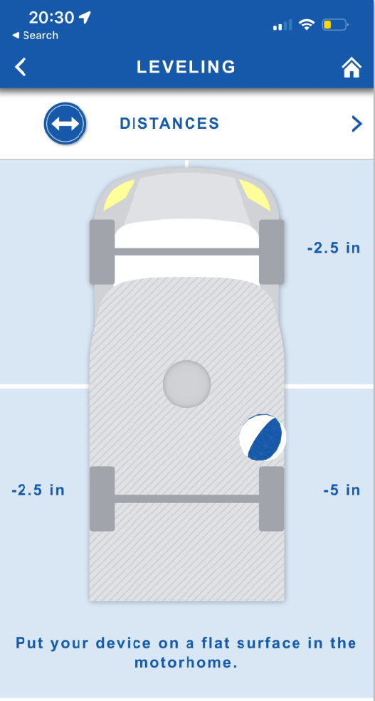 Ook handig: de meeste "smart phones" hebben een ingebouwde waterpas. Er zijn ook applicaties die je kan installeren waarop je precies kan zien hoeveel verval er is tussen de wielen. Zelf gebruik ik de versie van Truma. Die is gratis omdat hij bedoeld is voor eigenaren van een speciale RV-koelkast, maar de applicatie heeft een functie om de RV waterpas te zetten.